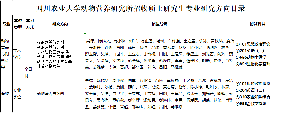 英国365(集团)公司官方网站动物营养研究所2025年招收硕士研究生专业研究方向目录