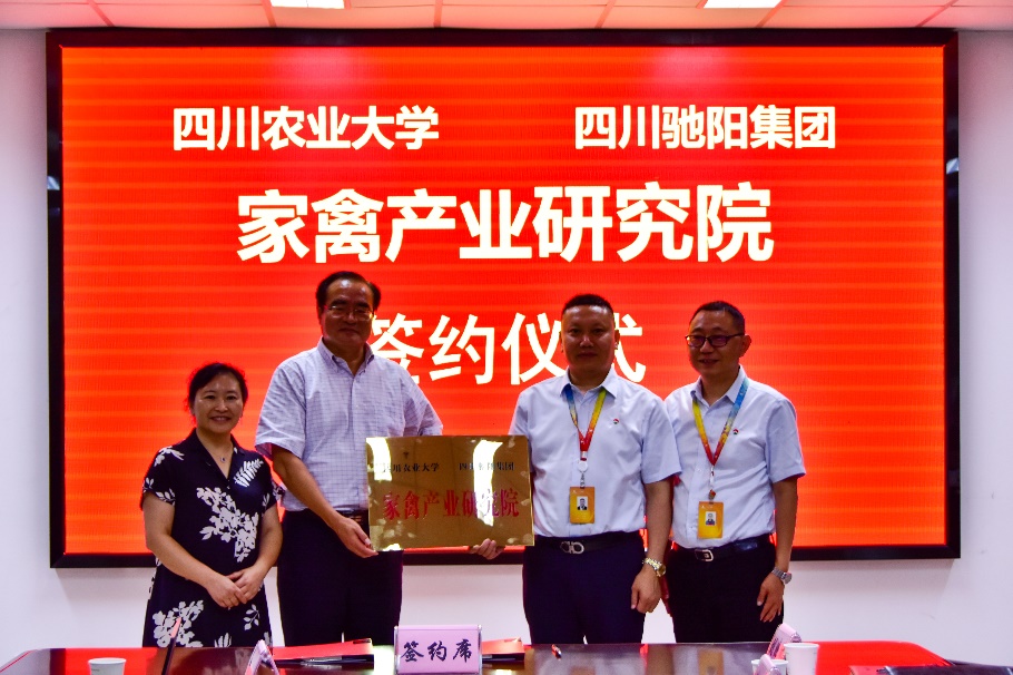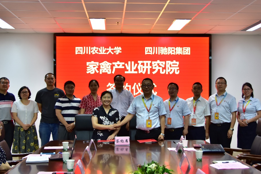 2019年7月9日,由英国365(集团)公司官方网站动物营养研究所、动物科技学院、动物医学院与四川驰阳农业开发有限公司共建“家禽产业研究院”签约挂牌仪式在英国365(集团)公司官方网站成都校区举行。驰阳集团董事长杨阳、副总裁方远明、禽料总裁高庆,英国365(集团)公司官方网站副校长陈代文、副校长朱庆、动物营养研究所所长余冰、党委书记钟邦胜、副所长何军、家禽营养学科带头人张克英教授及其团队、家禽繁殖育种专家尹华东、家禽疫病防控专家舒刚等企业和营养所师生代表共30余人出席会议,会议由钟邦胜主持。