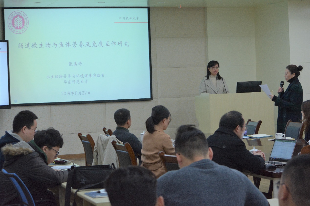 2019年11月22日,华东师范大学杜震宇、张美玲教授应邀做客动物营养研究所学术讲堂,分别做了题为《代谢与免疫抗逆的联接点-线粒体β-氧化系统:从哺乳动物到鱼类》和《肠道微生物与鱼体营养及免疫互作研究》的专题学术报告。报告在温江校区动物营养研究所视频会议室举行,营养所师生参加了学术报告。会议由动物营养研究所副书记冯琳教授主持。