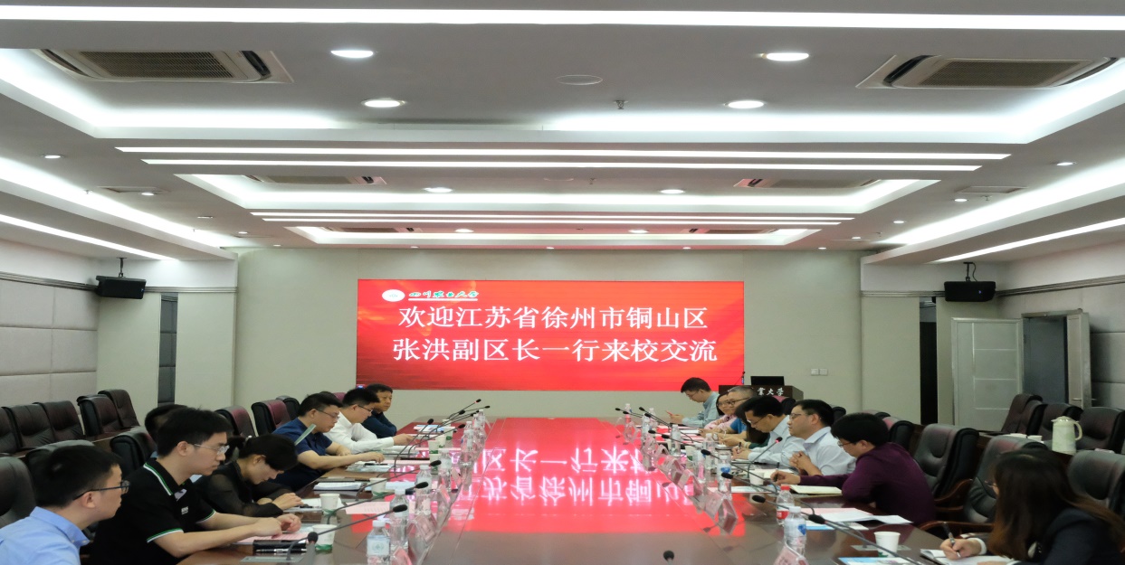 副校长陈代文对张洪副区长一行不辞千里驱车到来表示热烈欢迎和衷心感谢,介绍了我校在校地、校企合作方面的情况,强调了我校长期以来立足产业需求、开展科学研究的科研、教学理念,并提出要充分发挥政产学研各自优势、联合创新,下一步要深入加强与铜山区政府的校地合作,开启我校与东部发达地区校地合作新篇章,共同推动现代农业发展。