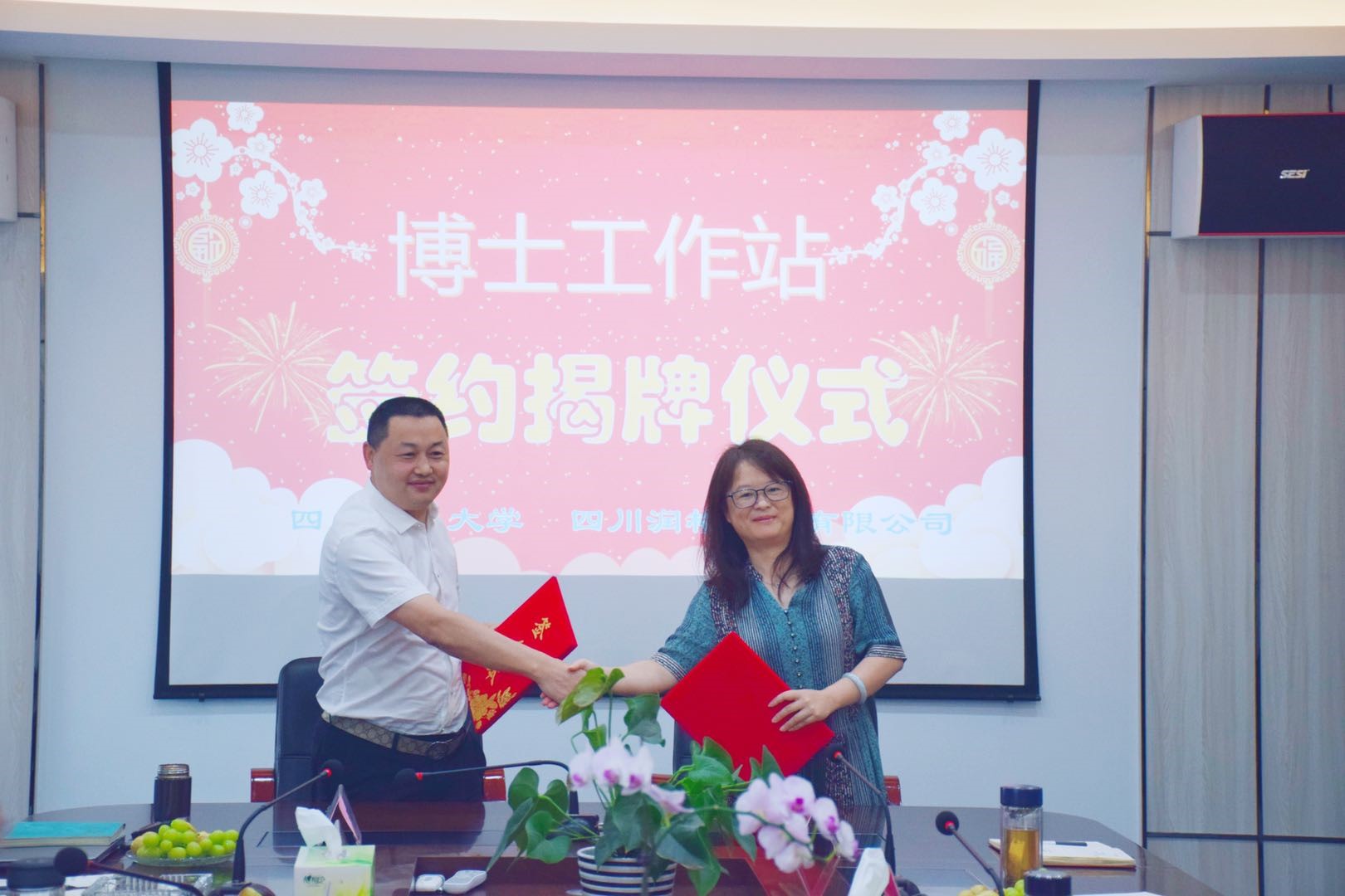 签约仪式上,田建平对公司的未来发展规划及产品特点等做了全面的介绍。陈代文代表学校和营养所致辞,对公司的发展表示肯定;同时指出,当前畜牧行业面临着无抗转型和资源匮乏现状,压力巨大,建立博士工作站主要初衷是提高资源利用率,希望将上游的研发和下游的应用紧密结合,作出典范、干出时效,为产业提质增效作出更大贡献。博士工作站首席专家余冰与田建平签订博士工作站协议,陈代文和梁运祥为博士工作站揭牌。