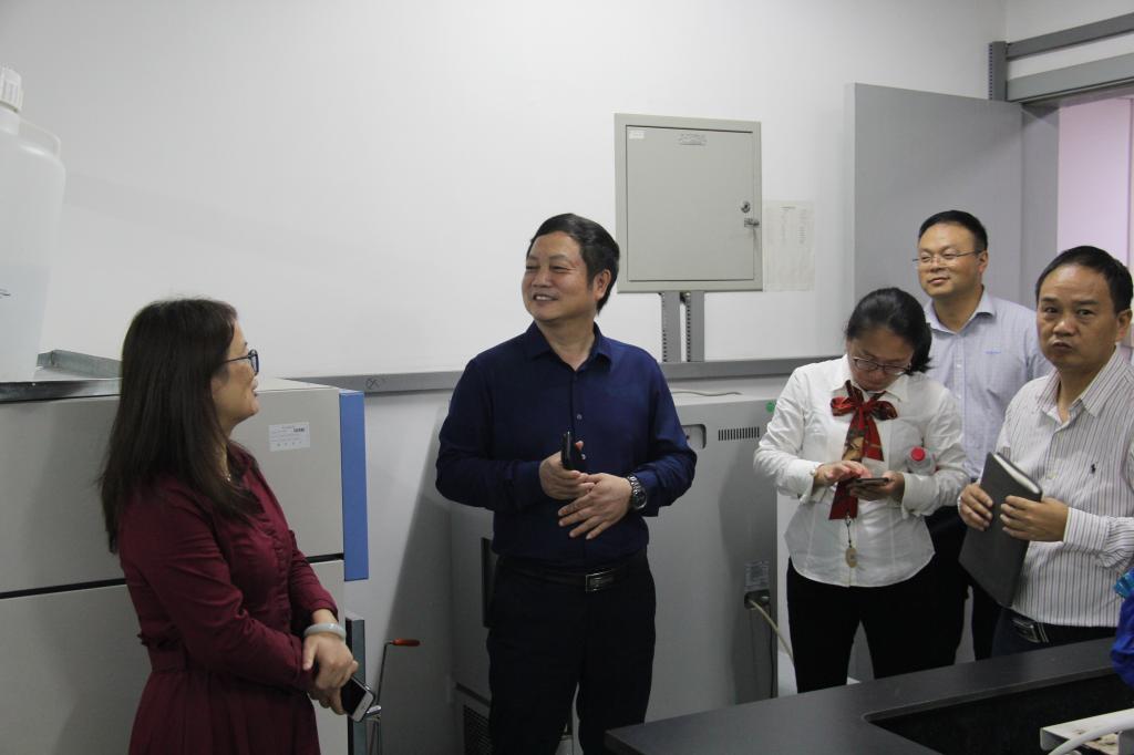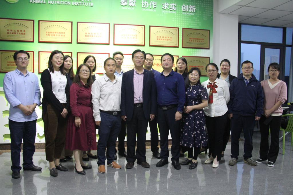 9月30日下午三点,四川特驱集团副总裁、四川特驱农牧执行总裁杜江平一行莅临英国365(集团)公司官方网站动物营养研究所交流指导。在英国365(集团)公司官方网站动物营养研究所所长余冰、党委副书记冯琳、实验室副主任汤加勇等老师的陪同下对第六教学动物营养研究所实验室进行参观,余冰和汤加勇向杜江平一行讲解了动物营养研究所当前的科研现状及平台条件,并进行交流讨论。