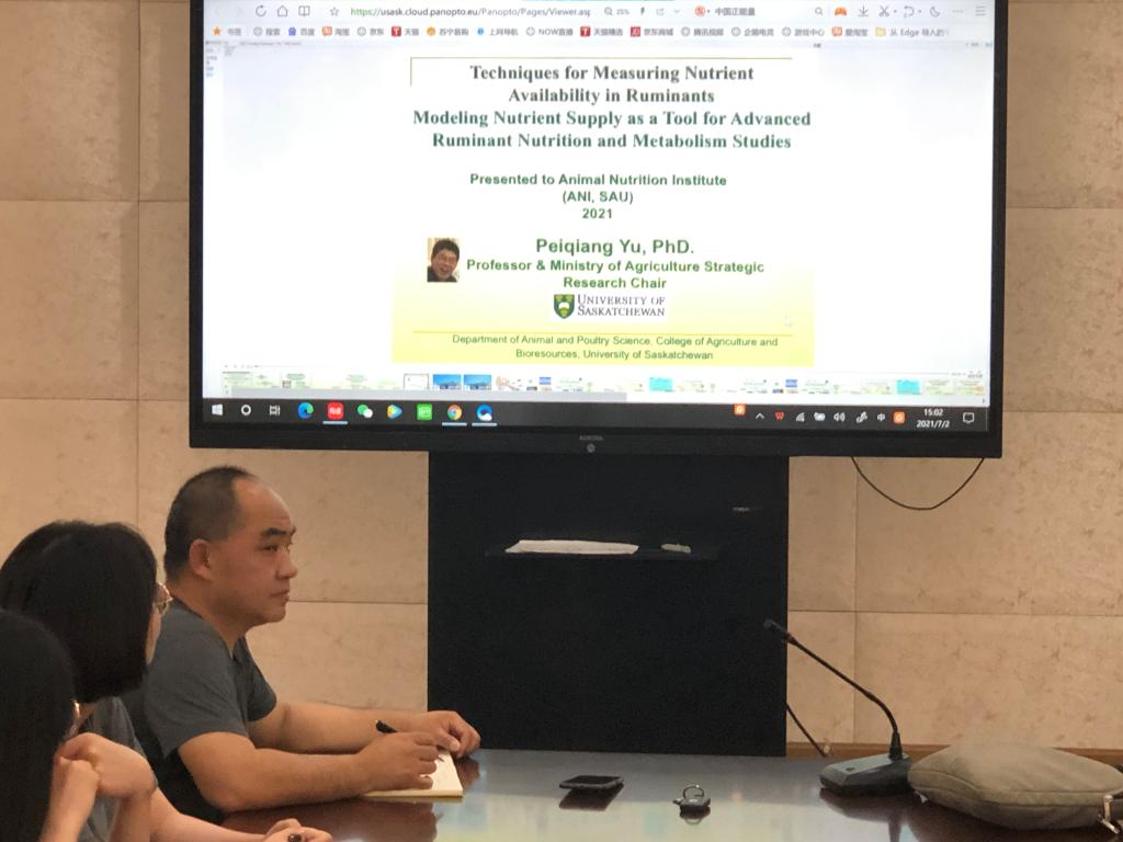2021年7月2日周五下午15:00,“动物营养与饲料科学学科创新引智基地(111基地)”外籍专家学术报告于成都校区6教9楼会议室举行。由于新冠疫情的关,专家无法进行现场授课,Yu教授应邀为我们准备了4节精彩纷呈的学术报告。报告通过网络平台开展,校内外师生通过线上线下的方式参与。