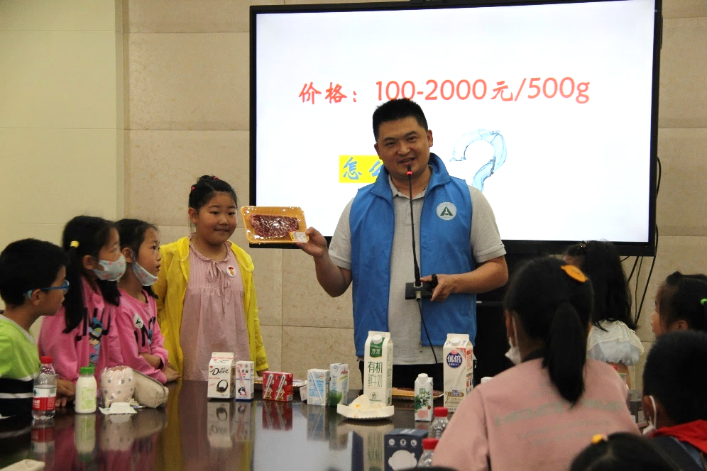 本次活动同时通过校园网、微信公众号及海报等形式线上线下宣传,一经发布受到社会广泛关注,大中小学学生、学生家长、社会媒体和企业朋友们共200余人报名参加本次活动。本次活动内容丰富,采用科普讲座、有奖竞答、畜禽产品现场品鉴及重点实验室参观学习相结合的形式,增强了活动的趣味性和科普性。动物营养研究所副所长车炼强教授、蒲俊宁老师及实验室张睿楠老师等负责本次科普活动;科普报告环节,彭全辉副教授、舒维成博士和岳子奇博士给大家带来了“鸡蛋的奥妙”和解密牛到底有多“牛”的科普报告,用生动有趣的讲述方式让参与人员深入了解日常生活中接触到的鸡蛋、牛奶和牛肉的来源、营养价值、选择方式及科学食用方法等,通过科普知识消除大众心目中畜禽产品常见的误区;同时在科普报告中,主讲人还设置了互动环节,通过有奖竞答调动小朋友们参与积极性;产品品鉴环节,大家对优质鸡蛋、牛肉、牛奶进行了观察或品鉴,科学认识了正确选择和食用畜禽产品在人们健康生活中的重要性;在参观学习环节,吕莉副教授、李华老师和张睿楠老师通过展板、实物展示、虚拟实验体验和实验操作等多种方式,让来访的小朋友们通过“学习、参观、体验”,领略动物营养与饲料科学及畜禽水产产品生产全过程,使公众切身感受到畜牧科技创新的迷人魅力,好评不断,反响热烈。