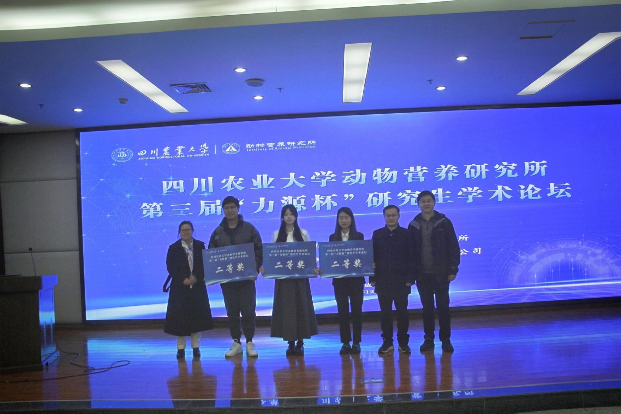 12月15日,动物营养研究所第三届“力源杯”研究生学术论坛顺利举办,本次论坛在成都校区图书馆2楼报告厅、第六教学楼9楼会议室设置主、分会场,桂林力源粮油食品集团有限公司张春愿先生出席本次论坛,学科带头人陈代文教授、所领导钟邦胜、冯琳、车炼强,王之盛、曾秋凤、赵华等教授担任评委,全体研究生约400余人参加会议,论坛由冯琳教授及研究生刘中玉、原正东、王春辉、张佳佳、孟嘉赓、王萌同学主持。