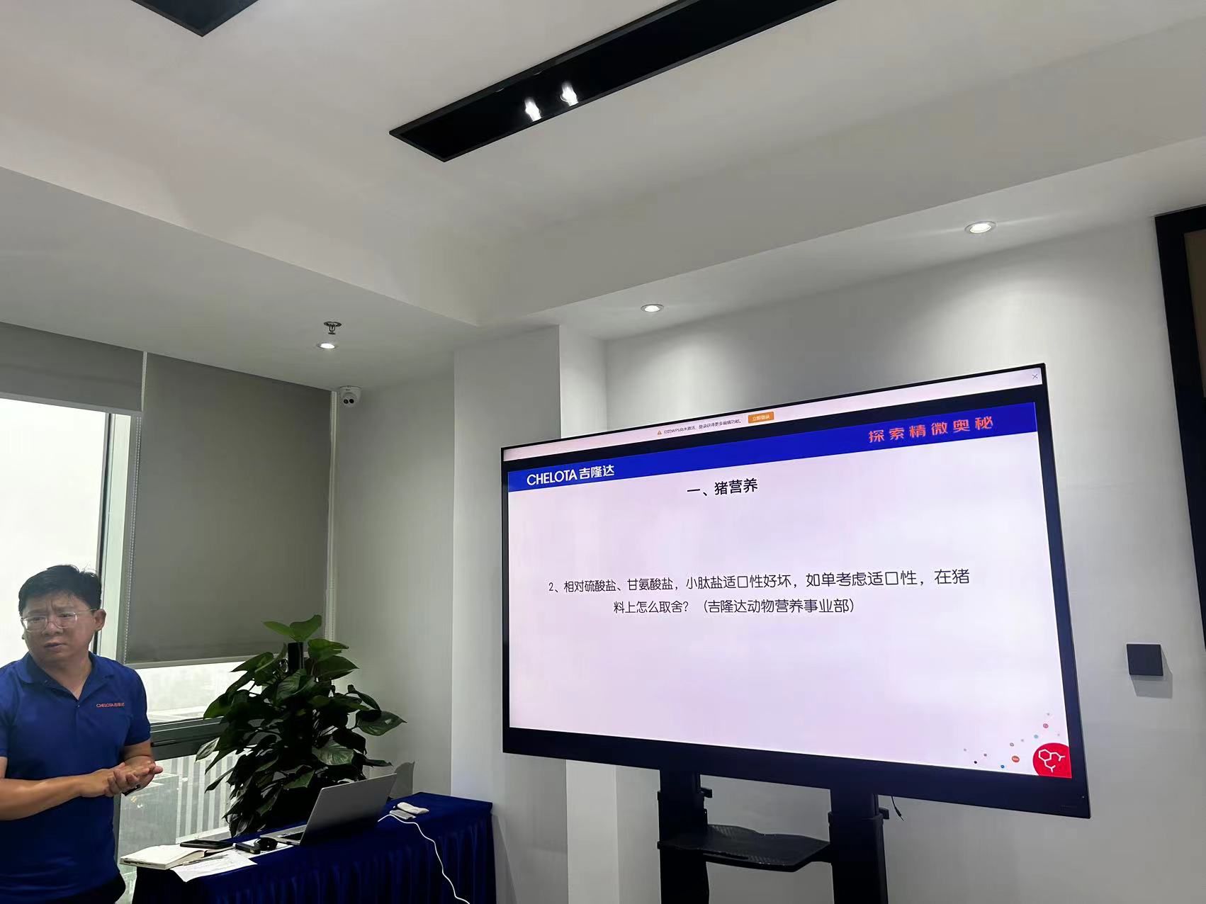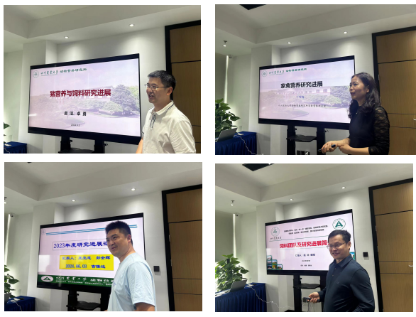 动物营养研究所各研究室主任从猪、家禽、反刍、饲料等方面介绍了最近研究进展,与会老师根据本人的研究方向和研究成果就企业提供的技术难题建言献策,企业的技术需求也为老师们的研究提出了新的思考和借鉴,对行业现状及发展前景进行了深入探讨,并就 2024 年下半年拟开展的研究课题(微量元素、油脂预消化)进行了详细交流会谈。