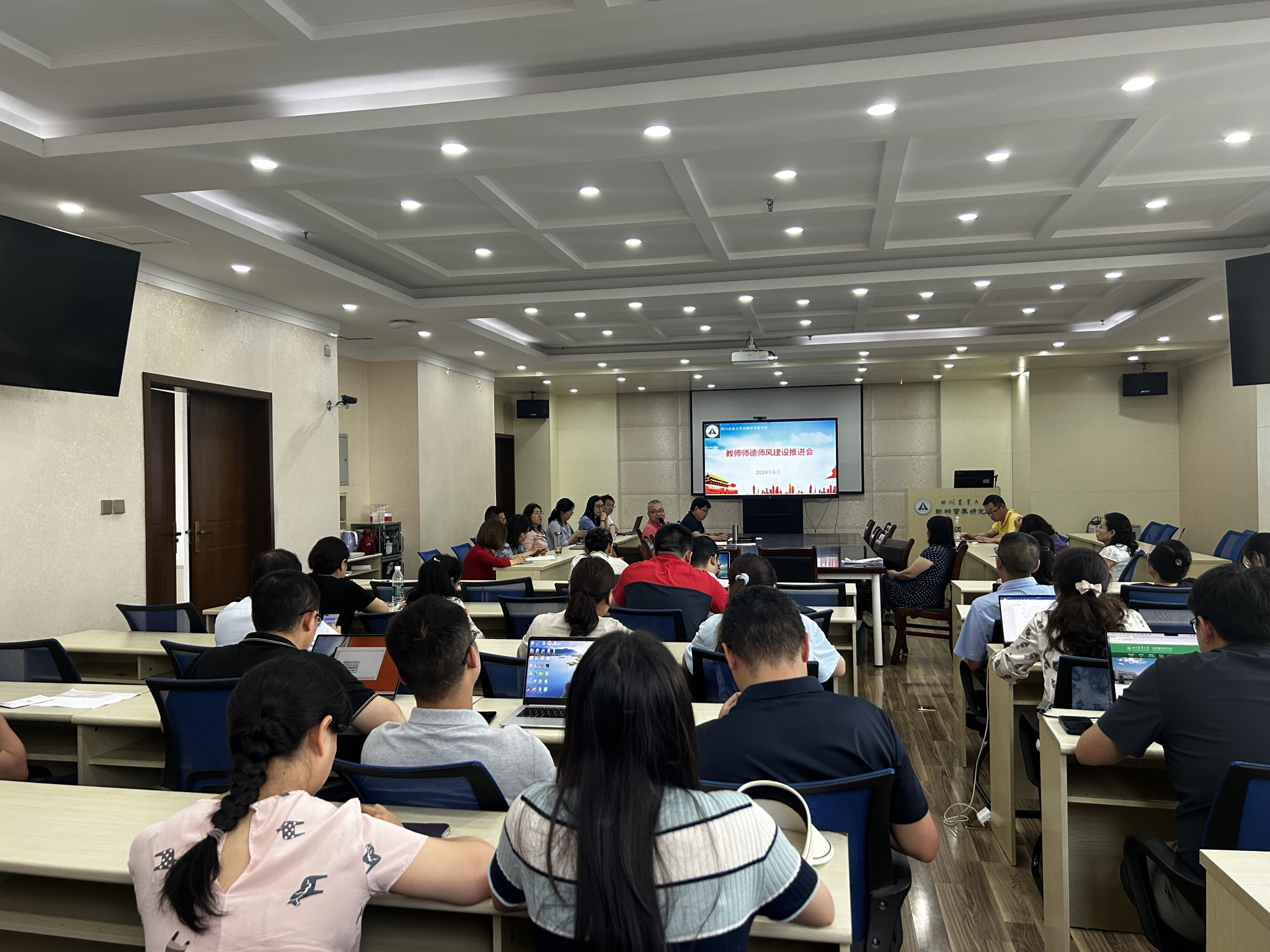 6月11日,动物营养研究所在6教9楼会议室召开了师德师风建设推进会,会议由所党委书记钟邦胜主持,全体教职工参与会议。