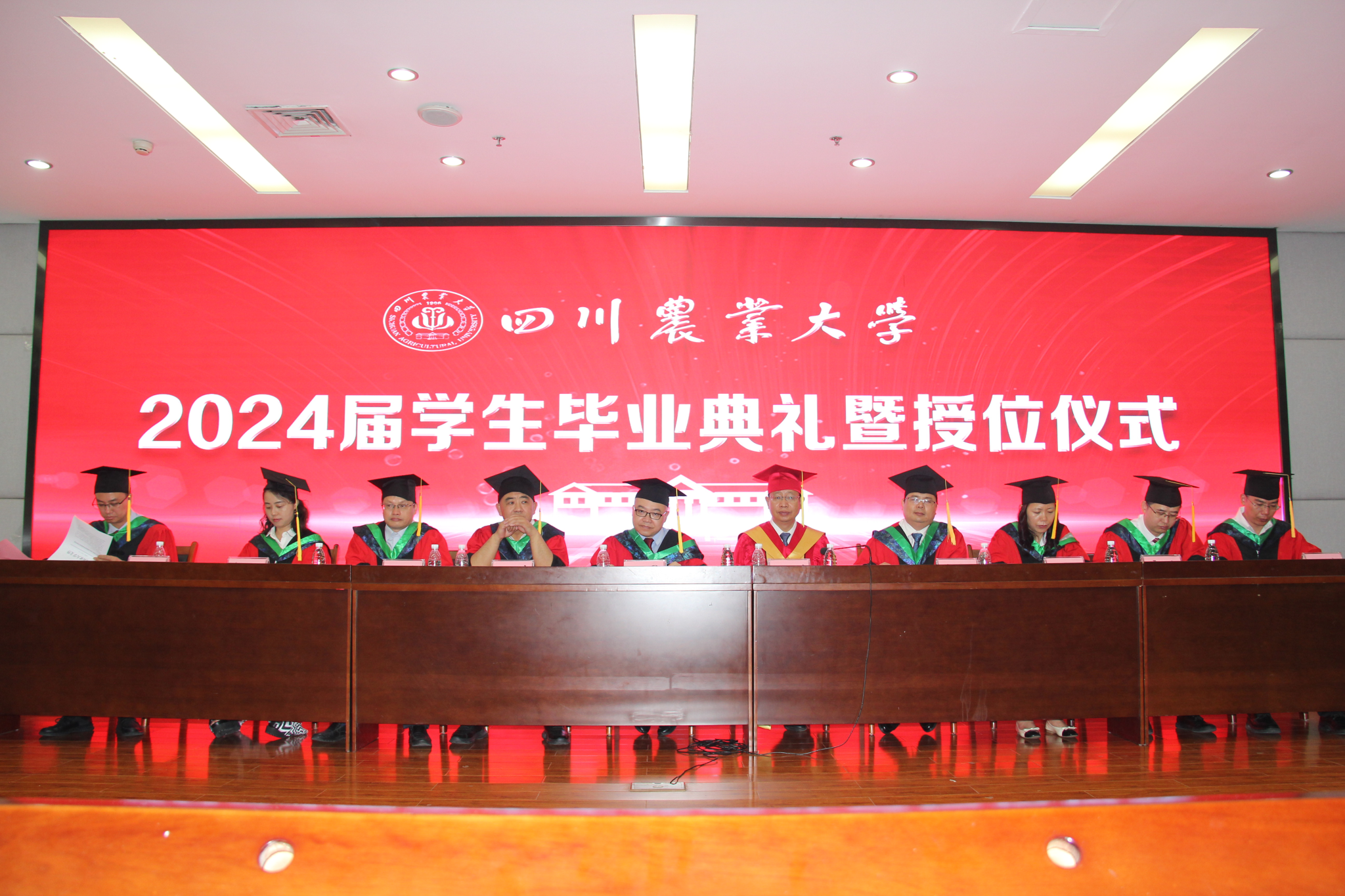 典礼的最后,毕业生们共同唱起《歌唱祖国》,慷慨激昂的合唱声在典礼现场久久回荡,隽永留长。全体毕业生们依依不舍地与师长们挥手道别,驻足合影留念。他们带着师长的殷殷嘱托、母校的深深祝福,满载“川农大人”的光荣与梦想,即将奔赴更广阔的星辰大海!