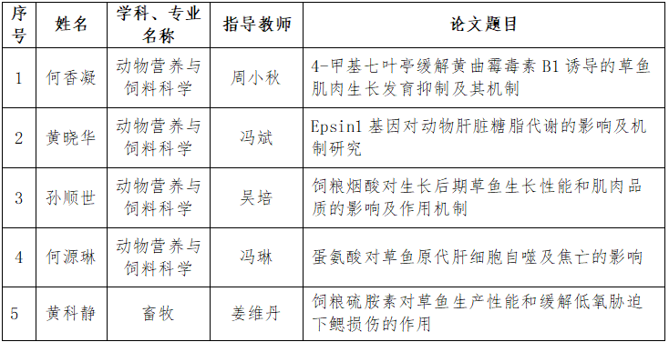 根据学校《关于开展2025年优秀博(硕)士学位论文评选工作的通知》要求,经本人申请,动物营养研究所学位评定分委员会评审,现将2025年优秀学位论文拟推名单公示如下: