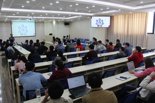 岳博士首先为我们简单介绍了禾丰公司的总体概况以及国内饲料养殖行业发展的现状。又热情地分享了他求学时的一些有趣经历和经验,他希望我们硕博期间要多读文献,尤其是外文综述,整合成自己的理论体系,认真严谨的科研素养,而不仅仅限于研究课题,多了解行业的热点,难点,开阔视野,重视生物安全。