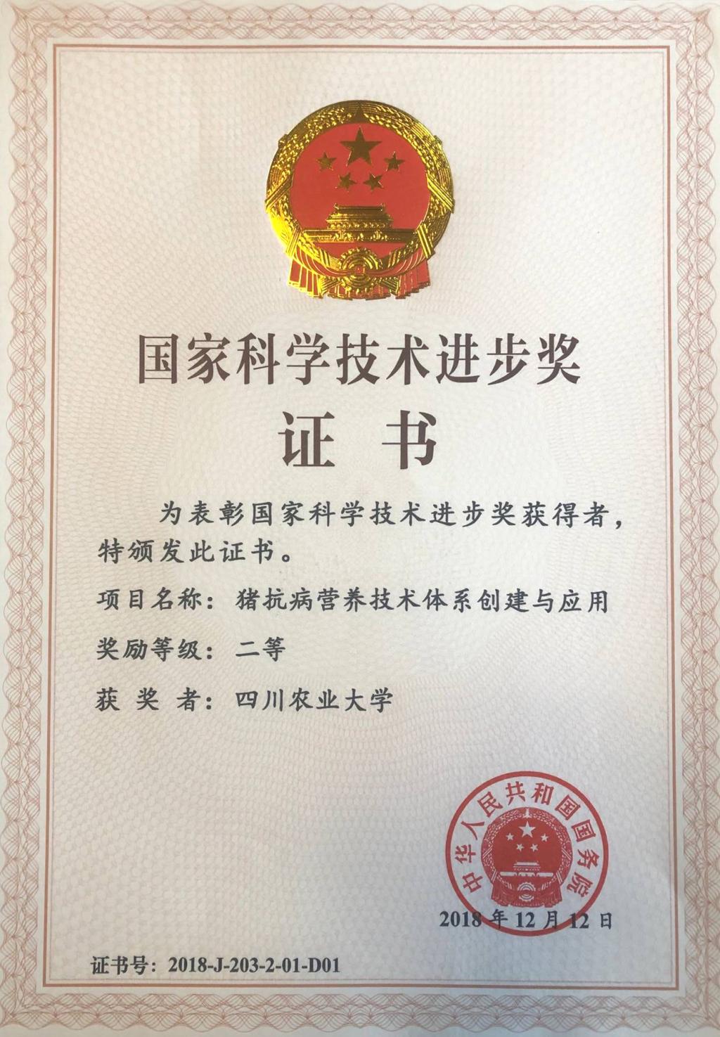 项目针对当前生猪养殖中存在的健康问题,以系统科学理论和方法为指导、以营养与免疫为核心,通过动物营养及相关学科技术手段,经过近二十年的系统研究,揭示了营养与动物健康的关系,创建了抗病营养理论,阐明了提高猪抗病力的营养原理,构建了猪抗病营养参数51个,形成提高猪免疫力、缓解病原微生物危害、确保肠道健康、抗应激、防霉抗霉、挽救弱小仔猪等六大关键技术,授权专利43项,研制各类新产品30个;发表论文 227篇,其中SCI论文106篇,出版专著及相关教材7部,培养博士和硕士共103人。项目技术和成果从 2006年开始应用,经四川省社会科学院农村发展研究所评估,项目已获经济效益72.9亿元,经济效益十分显著。成果整体达国际先进水平,部分研究达到国际领先水平。