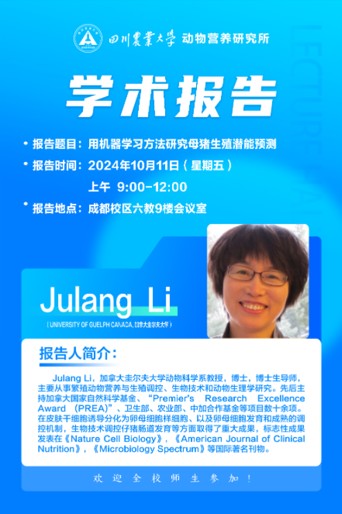 【学术报告】用机器学习方法研究母猪生殖潜能预测